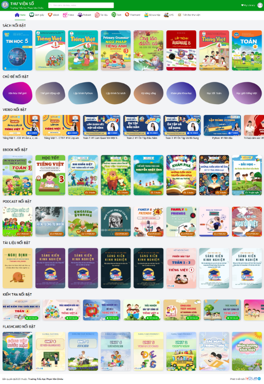 •  Website thư viện và ứng dụng thư viện số phục vụ giáo viên và học sinh